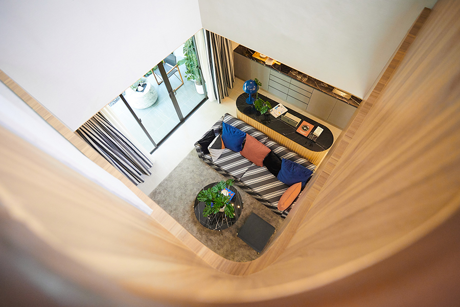 - พิเศษ กับ Double volume ทำให้ตัวเพดานสูงโปร่ง โล่งไปถึงชั้นสองของบ้าน และสามารถมองลงมายังพื้นที่บริเวณห้องรับแขกได้ด้วย