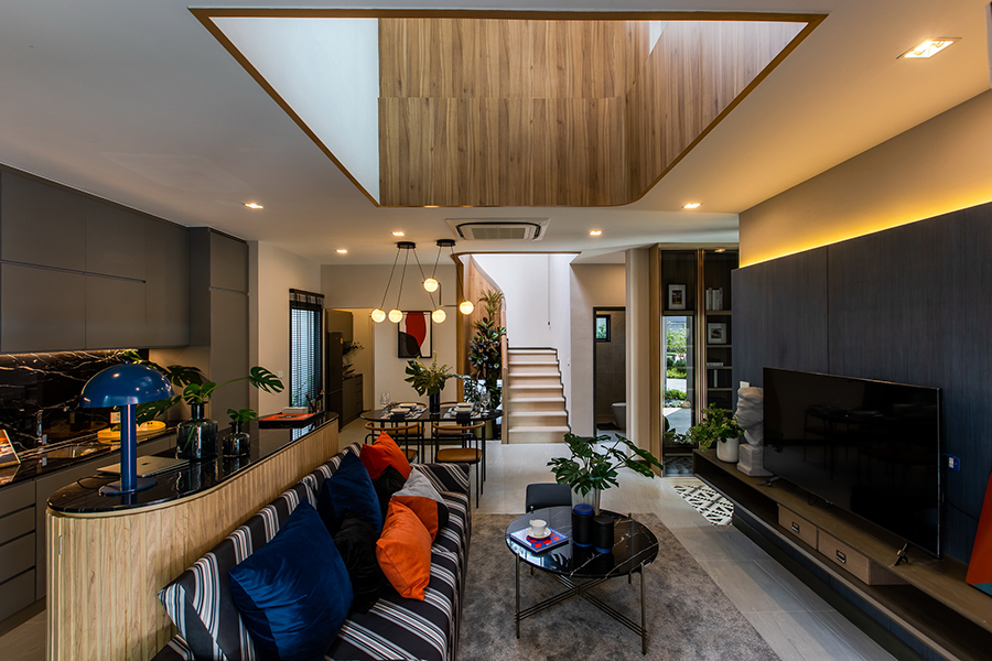 - Living Area มีขนาดใหญ่ มีการ balance ระหว่าง indoor และ out door สำหรับเพื่อนมาปาร์ตี้ ได้บริเวณด้านข้างบ้านแบบ Semi outdoor
