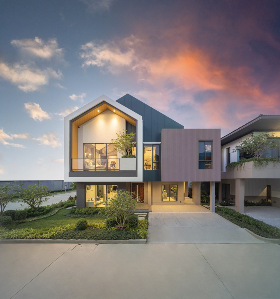 แบบที่ 2 บ้านเดียวกัน บนพื้นที่ 57.3 ตารางวา ขนาดพื้นที่ใช้สอย 262 ตารางเมตร มี 3 ห้องนอน 3 ห้องน้ำ และ 2 ที่จอดรถ ด้วยแนวคิด คือ การทำบ้านให้ทุกคนมีพื้นที่ของตัวเองและปรับเปลี่ยนได้ กับทุก generation (practical design) ซึ่งความต่างคือขนาดพื้นที่ใช้สอยของตัวบ้านที่ใหญ่กว่า จึงออกแบบฟังก์ชั่น รองรับการใช้ชีวิตอยู่ที่บ้านมากขึ้น และ การทำกิจกรรมหลากหลายร่วมกัน เช่น บริเวณ Family Area ที่มาพร้อมครัวขนาดใหญ่ เพื่อให้พื้นที่ส่วนนี้เป็น Family Moment ให้ทุกคนได้ใช้เวลาร่วมกัน และ มีไฮไลท์พื้นที่พิเศษ Creative Space (ชั้นลอย) สำหรับเติมเต็มจินตนาการของผู้อยู่อาศัยได้อย่างลงตัว