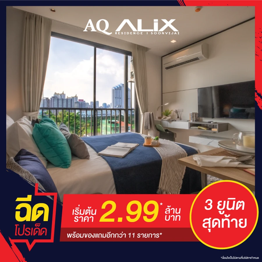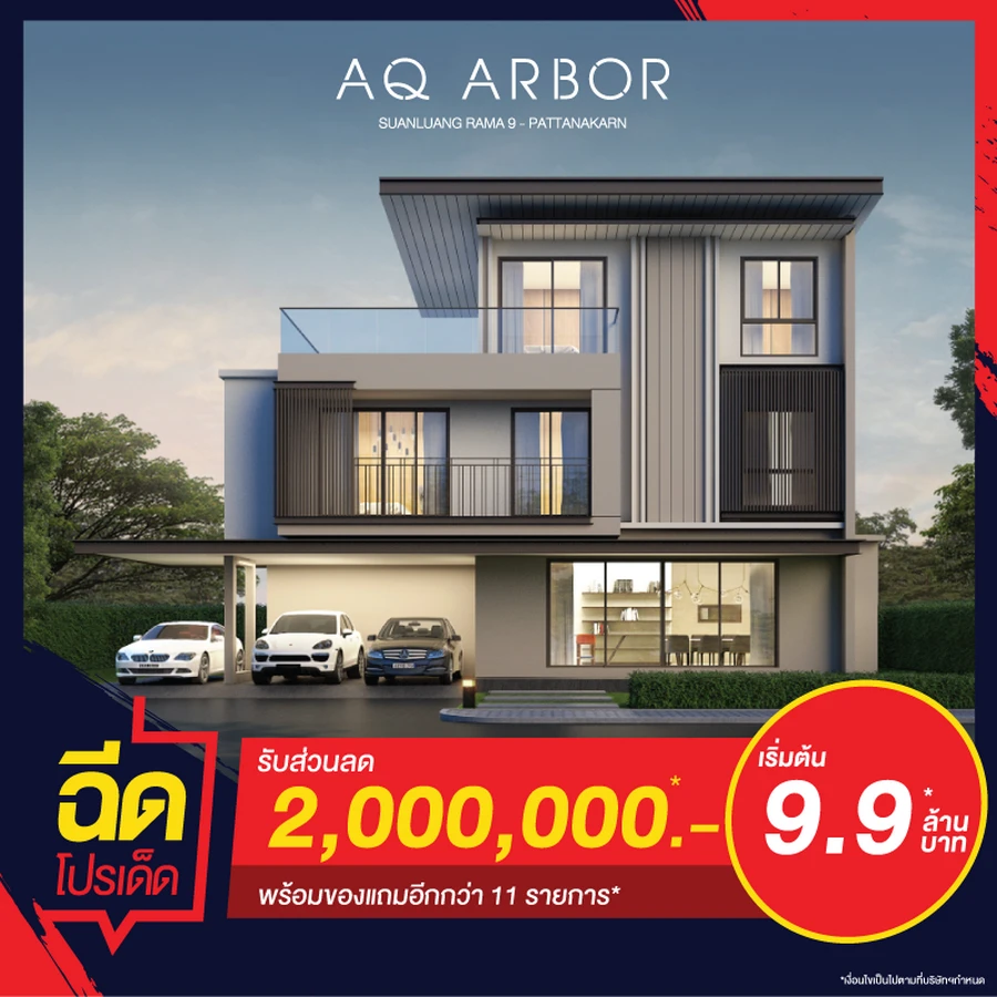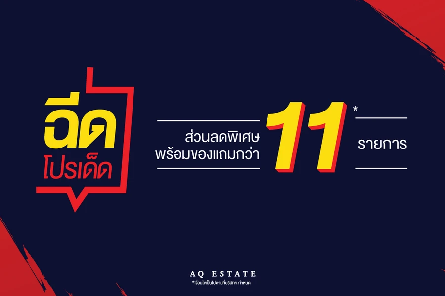 AQ Estate จัดโปรโมชั่น บ้าน+คอนโด กับ #ฉีดโปรเด็ด! 5 โครงการในเครือ AQ ESTATE บ้านใหม่ไตล์โมเดิร์น และคอนโดมิเนียมที่ตอบโจทย์ทุกไลฟ์สไตล์บนพื้นที่แห่งของคุณบนทำเลศักยภาพ ส่วนกลางแบบจัดเต็ม ทั้งฟิสเนส, คลับเฮาส์ขนาดใหญ่, สระว่ายน้ำ,สนามเด็กเล่น และสวนส่วนกลาง พร้อมรับของแถมกว่า 11 รายการ รวมมูลค่าสูงสุด 2,000,000 บาท* โปรโมชั่นตั้งแต่วันนี้ - 31 พฤษภาคม 2564