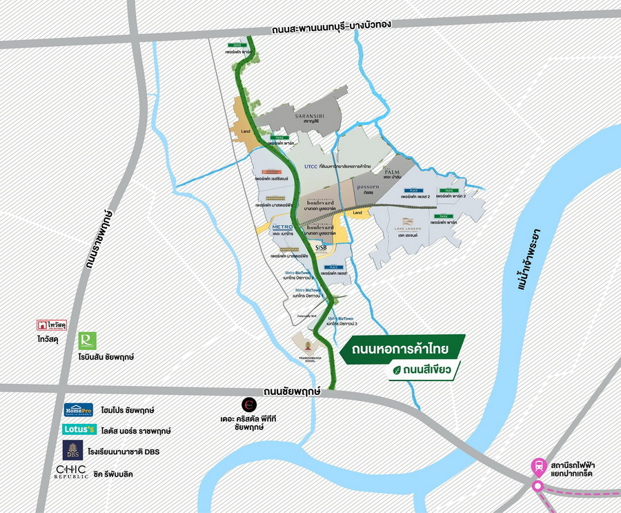 "เราได้ร่วมมือกับองค์กรชั้นนำเพื่อส่งเสริมการใช้พลังงานสะอาดบนถนนหอการค้าไทย โดยให้ทุกคนสามารถเข้าถึงได้ เริ่มจากการเตรียมความพร้อมเพื่อรองรับการใช้รถยนต์ไฟฟ้าได้สะดวก ด้วยการตั้งสถานีชาร์จไฟฟ้าบนพื้นที่ส่วนกลางและบริเวณชุมชน มีการติดตั้ง EV Charger Home Box ให้กับบ้านเดี่ยวทุกโครงการทุกระดับราคา มีการศึกษาถึงการให้บริการ EV Bus และตู้สลับแบตเตอรี่สำหรับมอเตอร์ไซค์ไฟฟ้าเพื่อให้บริการในชุมชน ตลอดจนยังได้รับความร่วมมือจากภาคธุรกิจที่ตั้งอยู่บนถนนนี้ ที่มีแนวทางการดำเนินงานในแบบเป็นมิตรต่อสิ่งแวดล้อม รวมทั้งจะติดตั้งเครื่องชาร์จรถยนต์ไฟฟ้าในศูนย์ราชการนนทบุรี เพื่อจุดประกายให้คนหันมาสนใจการใช้พลังงานสะอาดมากขึ้น"