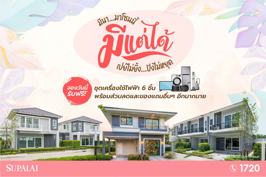 มีนา...มาโซนนี้มีแต่ได้ เปย์ไม่ยั้ง...ปังไม่หยุด เมื่อจองบ้านเดี่ยว บ้านแฝด และทาวน์โฮม โซนรังสิต - ลำลูกกา รับฟรี! ชุดเครื่องใช้ไฟฟ้า 6 ชิ้น* พร้อมรับของแถมอื่นๆอีกมากมาย กู้ไม่ผ่านคืนเงิน โครงการที่เข้าร่วมโปรโมชั่น อาทิ