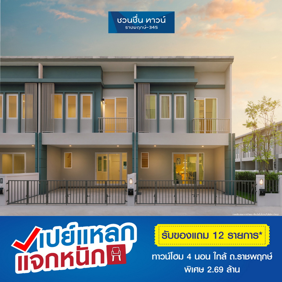 ชวนชื่น ทาวน์ ราชพฤกษ์-345 ทาวน์โฮมหลังใหญ่ 140 ตร.ม. หน้ากว้าง 5.7 เมตร จอดรถ 2 คัน ฟังก์ชันครบ วัสดุเทียบเท่าบ้านเดี่ยว ใกล้ถนนราชพฤกษ์เพียง 5 นาที พิเศษ 2.69 ล้าน*