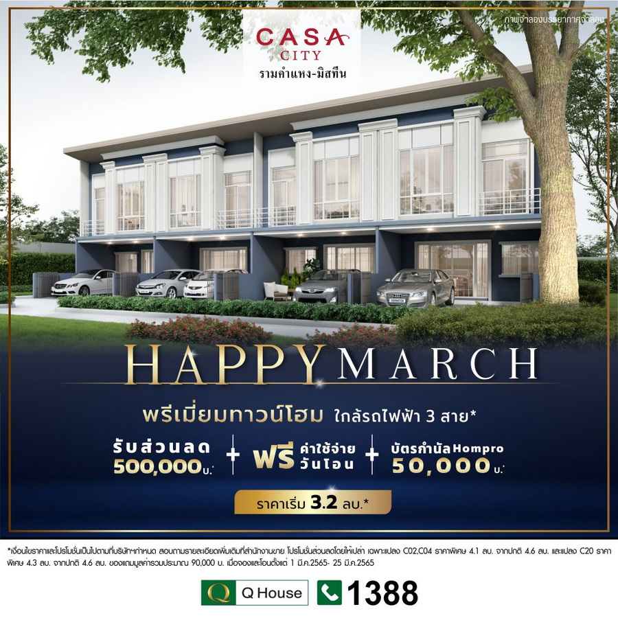 คาซ่า ซิตี้ รามคำแหง - มิสทีน พรีเมี่ยมทาวน์โฮม ใกล้รถไฟฟ้า 3 สาย จัดโปรโมชั่น "Happy March" รับส่วนลด5แสนบาท บัตรกำนัล Homepro มูลค่า 50,000 บาท* ราคาเริ่ม 3.2 ล้านบาท ลงทะเบียนรับเพิ่มฟรี 4 รายการ*