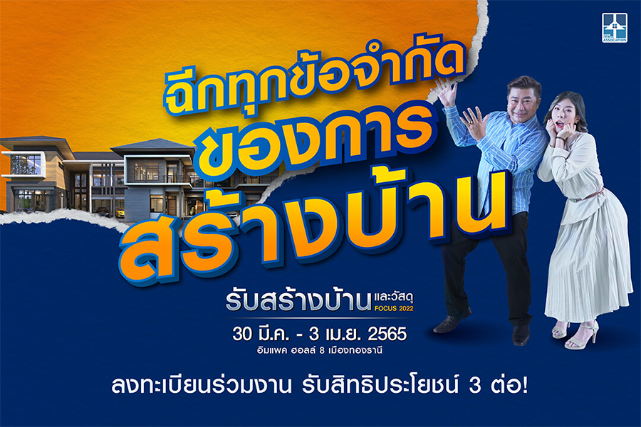 สมาคมธุรกิจรับสร้างบ้าน ประเมินสถานการณ์ตลาดไตรมาสแรกของปี 2565 จับตาปัจจัย "รัสเซีย-ยูเครน" โควิด-19 ค่าแรง ต้นทุนน้ำมัน ราคาวัสดุก่อสร้าง ปัญหาเงินเฟ้อและทิศทางดอกเบี้ย ส่งผลต่อราคาบ้านขยับ 5-8% ในอนาคต ชี้ผู้บริโภคคว้าโอกาสสร้างบ้านต้นทุนเดิมก่อนปรับตัว เดินหน้าจัดงานรับสร้างบ้านและวัสดุ FOCUS 2022 ตอบโจทย์ทุกความต้องการเรื่องบ้าน เทรนด์นวัตกรรมและแบบบ้านใหม่ พร้อมอัดโปรโมชั่นพิเศษ 30 มีนาคม - 3 เมษายน 2565 นี้ ที่อิมแพ็ค เมืองทองธานี ฮอลล์ 8 หวังกระตุ้นตลาด 2,100 ล้านบาท จากยอดจองในงาน