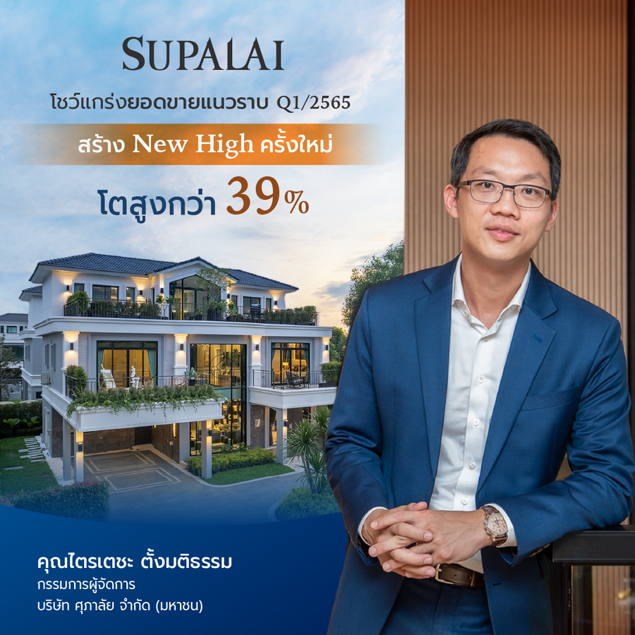 นายไตรเตชะ ตั้งมติธรรม กรรมการผู้จัดการ บริษัท ศุภาลัย จำกัด (มหาชน) กล่าวว่า ไตรมาสแรกของ ปี 2565 ที่ผ่านมา บริษัทฯ ได้สร้างปรากฏการณ์ครั้งสำคัญด้านยอดขายที่มีตัวเลขเติบโตอย่างแข็งแกร่ง โดยมีปัจจัยบวกจากการพัฒนาด้านกลยุทธ์การขาย เพิ่มสินค้าใหม่และสร้างความแตกต่าง การบริหารจัดการให้มีสินค้าพร้อมขาย รวมถึงการโอนกรรมสิทธิ์อย่างต่อเนื่อง
