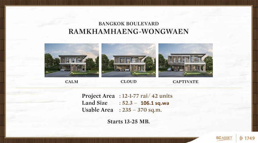 SC Asset ใส่เกียร์ลุยเปิดแนวราบใหม่ 25 โครงการ มูลค่ารวม 35,000 ล้านบาท เน้นพัฒนาโครงการบ้านในระดับราคามากกว่า 10 ล้านบาท โดยเฉพาะแบรนด์ บางกอก บูเลอวาร์ด และบางกอก บูเลอวาร์ด ซิกเนเจอร์ ชู "Design-Quality-Community : ปัจจัยแห่งความสำเร็จ" พร้อมปล่อยแคมเปญ "Your Story Your Bangkok Boulevard" เรื่องสั้น 3 อารมณ์ ถ่ายทอดเรื่องจริงจากครอบครัว บางกอก บูเลอวาร์ด พร้อมตอกย้ำความมุ่งมั่นสู่แบรนด์บ้านเดี่ยวอันดับ 1 ในใจผู้บริโภค