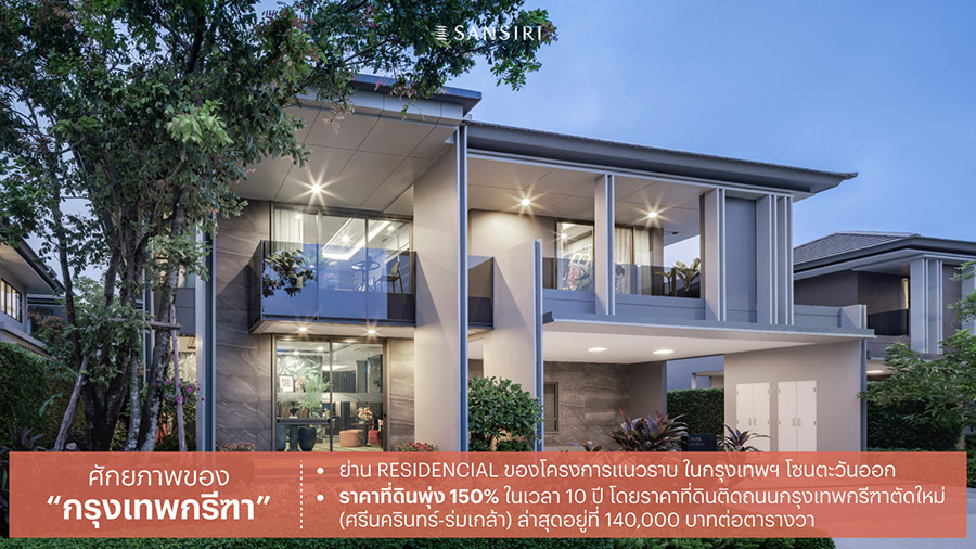 “กรุงเทพกรีฑา” นับเป็นคอมมูนิตี้การอยู่อาศัยที่น่าจับตามอง เพราะเป็นย่านที่อยู่อาศัยระดับเรสซิเดนซ์เชียลของโครงการแนวราบ ในกรุงเทพฯ โซนตะวันออก จากทำเลศักยภาพที่ตั้งอยู่ในพื้นที่ “ผังเมืองสีเหลือง” ของกรุงเทพฯ ซึ่งหมายถึงพื้นที่มีความหนาแน่นของการอยู่อาศัยน้อย และเป็นเขตปลอดแหล่งอุตสาหกรรม เหมาะแก่การเป็นที่อยู่อาศัยที่เน้นคุณภาพการอยู่อาศัยที่ดี ประกอบกับมีสิ่งอำนวยความสะดวกครบครัน ทั้งโรงเรียนนานาชาติ โรงพยาบาลและคอมมูนิตี้มอลล์ชั้นนำ เป็นทำเลในเมือง เดินทางง่ายสู่กรุงเทพชั้นใน (CBD) ด้วยถนนสายหลักตัดใหม่ อย่างถนนกรุงเทพกรีฑาตัดใหม่ (ถนนศรีนครินทร์ – ร่มเกล้า) ซึ่งเป็นถนนขนาด 6 เลน ใกล้ทางด่วน เชื่อมต่อการคมนาคมทุกเส้นทาง เข้าสู่เมืองง่ายและรวดเร็ว ด้วยถนนพระรามเก้า – มอเตอร์เวย์, ถนนกรุงเทพกรีฑา, ถนนพัฒนาการ, ถนนรามคำแหง, ถนนหัวหมาก, ถนนมอเตอร์เวย์กรุงเทพฯ-ชลบุรี และถนนกาญจนาภิเษก (วงแหวนตะวันออก) เชื่อมต่อรถไฟฟ้าหลายเส้นทาง และใกล้รถไฟฟ้าถึง 3 สาย คือสายสีเหลือง ลาดพร้าว-สำโรง ที่กำลังดำเนินการก่อสร้างตามแนวถนนศรีนครินทร์คาดว่าจะเปิดให้บริการเร็วๆ นี้ และรถไฟฟ้าสายสีส้ม ที่จะเชื่อมระหว่างตะวันออกและตะวันตกของกรุงเทพฯ กำหนดแล้วเสร็จในปี 2566 รวมถึงรถไฟฟ้าแอร์พอร์ตลิงก์ และยังเป็นทำเลที่อยู่ใกล้ สนามบินสุวรรณภูมิ อีกด้วย ส่งผลให้ราคาที่ดินของทำเลกรุงเทพกรีฑาพุ่งสูงขึ้นถึง 150% ในเวลา 10 ปี โดยเฉพาะราคาที่ดินในช่วงต้นถนนกรุงเทพกรีฑาตัดใหม่ (ศรีนครินทร์-ร่มเกล้า) ราคาพุ่ง จากการแวดล้อมด้วยคอมมูนิตี้และสิ่งอำนวยความสะดวกมากที่สุด ขณะที่ราคาที่ดินติดถนนกรุงเทพกรีฑาตัดใหม่ (ศรีนครินทร์-ร่มเกล้า) ล่าสุดอยู่ที่ 140,000 บาทต่อตารางวา จากความต้องการการอยู่อาศัยในพื้นที่นี้ที่ขยายตัวอันดับหนึ่ง เติบโตขึ้นราว 10%