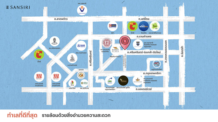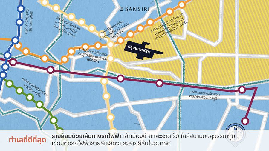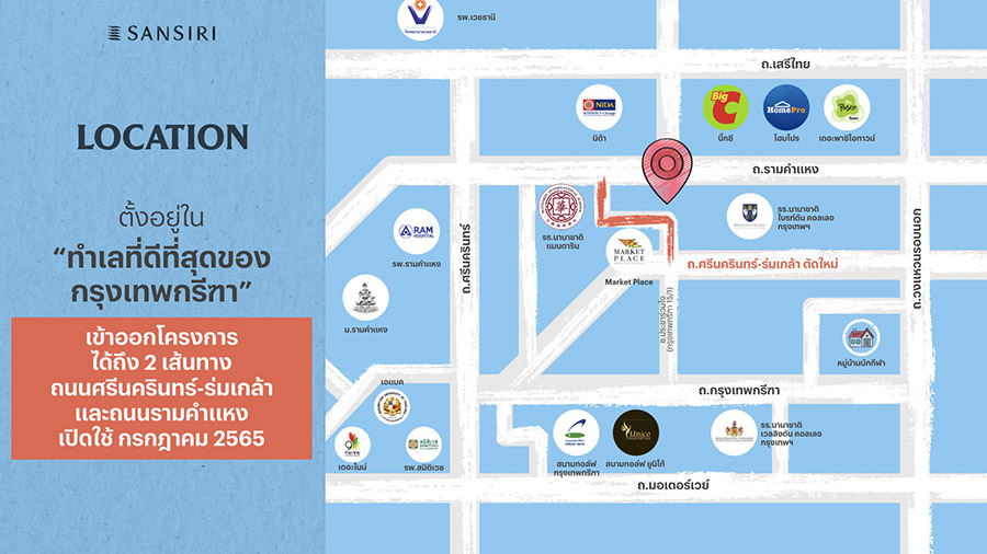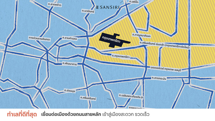 ปัจจัยสำคัญในการพัฒนาที่ดินทำเลกรุงเทพกรีฑา จำนวน 500 ไร่ของแสนสิริ ให้เป็น “กรุงเทพกรีฑา คอมมูนิตี้” ด้วยจุดแข็งในทำเล 3 ด้านหลัก ได้แก่ Location ตั้งอยู่ในทำเลดีที่สุดของกรุงเทพกรีฑา ที่มีความโดดเด่นของพื้นที่โครงการ เข้าออกโครงการได้ถึง 2 เส้นทาง ทั้งทางถนนกรุงเทพกรีฑาตัดใหม่ (ศรีนครินทร์ -ร่มเกล้า) และถนนรามคำแหง เดินทางเข้าศูนย์กลางธุรกิจ (CBD) ได้ง่ายดาย โดยทางด่วนศรีบูรพาที่อยู่ใกล้เพียง 2 ก.ม. รถไฟฟ้าสายสีส้มที่อยู่ใกล้เพียง 2.3 ก.ม. และรถไฟฟ้าสายสีเหลือง 4 ก.ม. เดินทางไปสนามบินสุวรรณภูมิด้วยถนนกรุงเทพกรีฑาตัดใหม่ (ถนนศรีนครินทร์ – ร่มเกล้า) หรือมอเตอร์เวย์ โดยใช้เวลาเพียง 20 นาที ทั้งยังเชื่อมต่อด้วยถนนสายสำคัญต่างๆ เข้าสู่เมืองง่ายดายด้วยถนนพระรามเก้า – มอเตอร์เวย์ ขึ้นทางด่วน เข้าสู่ทองหล่อด้วยเวลาเพียง 20 นาที รวมทั้ง Community ความเป็นสังคมอยู่อาศัยสมบูรณ์แบบ ที่พัฒนาภายใต้แนวคิด “You are Made for Life” ประกอบไปด้วยโครงการที่อยู่อาศัยของแสนสิริ ที่ปิดการขายแล้ว ได้แก่ เศรษฐสิริ กรุงเทพกรีฑา และ เศรษฐสิริ กรุงเทพกรีฑา2 ที่ได้รับการตอบรับที่ดี ในขนาดพื้นที่รวมของทั้งสองโครงการ จำนวน 155 ไร่ รวม 483 ยูนิต มูลค่าโครงการรวม 7,500 ล้านบาท