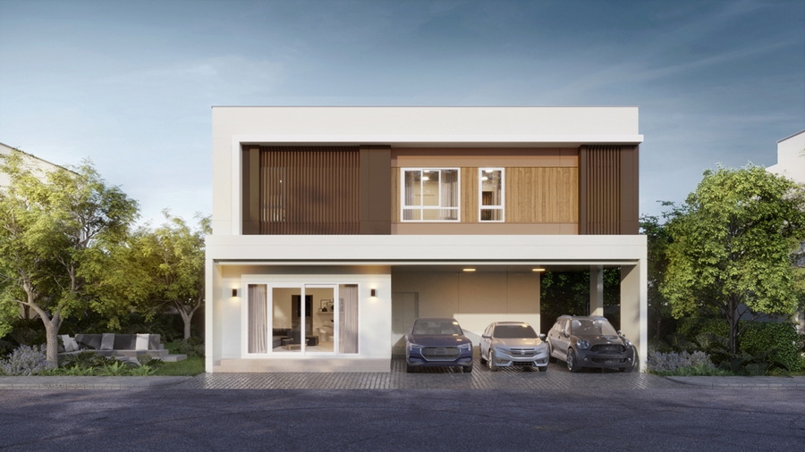 2. Spaces with Function-led Aesthetic มากกว่าความสวยงาม แต่ทุกพื้นที่คือการใช้งานได้จริง ซึ่งถือเป็นอีกหนึ่งความท้าทายของทีมออกแบบ ด้วยการคำนึงถึงการใช้งานได้จริง ที่เริ่มต้นตั้งแต่กระบวนการจัดวางผังโครงการ เพื่อให้เกิดเป็น Smart Space Smart Layout เช่น การจัดวางพื้นที่ในบ้านแบรนด์ CENTRO ดีไซน์ใหม่ ที่เปลี่ยนวิธีคิดในการจัดวาง 3 ฟังก์ชันหลักในชั้น 1 อย่างพื้นที่จอดรถ พื้นที่เก็บของนอกบ้าน และมุมมองทางเข้าบ้านใหม่ จนเกิดพื้นที่ใช้สอยในมิติใหม่จากพื้นที่ที่ทับซ้อนอยู่ หรืออย่างแบบบ้านแบรนด์ MODEN พื้นที่ภายในบ้านมีการออกแบบพื้นที่ส่วน ชั้น 2 ให้เป็น Pocket Space เชื่อมต่อกับ Family Area ซึ่งลูกค้าสามารถปรับพื้นที่ในมิติใหม่ๆ เพื่อรองรับกิจกรรมอื่นๆ ได้อย่างไม่จำกัด