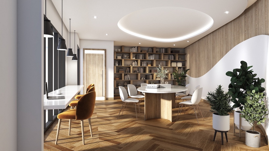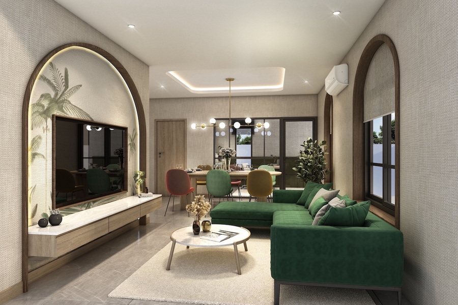 "บ้าน" อยู่ท่ามกลางธรรมชาติและถูกโอบล้อมด้วยต้นไม้สีเขียวที่ให้ความรู้สึกเหมือนอยู่ในผืนป่า ซึ่งช่วยสร้างบรรยากาศของการพักผ่อนที่แท้จริงให้กับผู้พักอาศัย โดยจินตนาการดังกล่าวได้เกิดขึ้นแล้วกับ