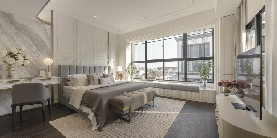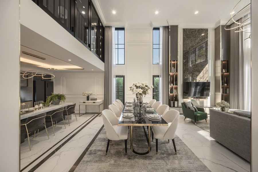 Modern Classic Cluster House ทาวน์โฮมและบ้านแฝด 4.5 ชั้น พร้อมลิฟต์ในบ้านทุกหลังเพื่อตอบโจทย์การใช้ชีวิตที่ลงตัว และรองรับครอบครัวหลากหลาย Generation ให้ทุกชั้นเข้าถึงกันได้อย่างสะดวกมากยิ่งขึ้น บนพื้นที่ดินเริ่มต้น 22-46.5 ตารางวา พื้นที่ใช้สอยรอบบ้านเริ่มต้นที่ 346 - 600 ตารางเมตร รูปแบบ 3 ห้องนอน 4 ห้องน้ำ มาพร้อมฟังก์ชันการใช้งานให้ทุกพื้นที่มีนวัตกรรมต่าง ๆ ที่จะสร้างสมดุลในการใช้ชีวิต ของทุกคนในครอบครัว พื้นที่ห้องนั่งเล่นตรงกลางบ้านได้ถูกออกแบบให้มีเพดานสูงแบบ Double Volume กว่า 5 เมตร ให้ความรู้สึกปลอดโปร่ง ผ่อนคลาย และห้องทำงานบริเวณชั้นลอย รองรับการปรับแต่งสร้างพื้นที่ส่วนตัวและบรรยากาศการใช้สอยพื้นที่ร่วมกันอย่างลงตัว Living Area ที่เชื่อมต่อกับสวนส่วนกลางเพิ่มความร่มรื่นให้แก่ภายในบ้าน วัสดุเกรดคุณภาพพิเศษ อาทิ Double Wall, Engineering Wood อีกทั้งยังมี Private Relaxation ด้วยสระว่ายน้ำระบบเกลือ สวนส่วนตัวภายในบ้าน ให้ผู้พักอาศัยได้ใช้ชีวิตอย่างผ่อนคลายในทุก ๆ วัน