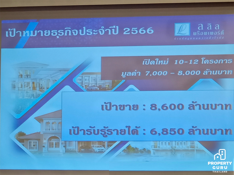 ลลิลฯ ประกาศแผนธุรกิจปี 2566 มุ่งเน้นการบริหารเพื่อการเติบโตอย่างยั่งยืน ตามหลัก ESG มุ่งสู่การเป็น National Housing Company และผู้นำของตลาดอสังหาริมทรัพย์แนวราบของประเทศ โดยเตรียมเปิดโครงการใหม่อย่างต่อเนื่อง 10 - 12 โครงการ มูลค่ารวม 7,000 – 8,000 ล้านบาท พร้อมตั้งเป้ายอดขายที่ 8,600 ล้านบาท และยอดรับรู้รายได้ที่ 6,850 ล้านบาท ขยายตัว 10%