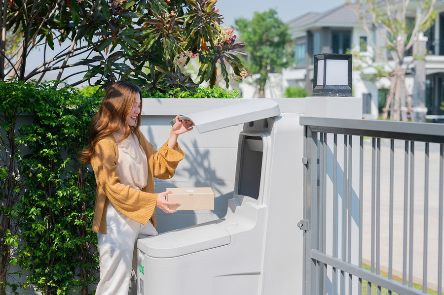 • ช่องด้านบน (Drop Box & Mail Box) ถูกออกแบบให้เป็นช่องขนาดกลาง มีฝาบานเปิดด้านนอก-ด้านใน สามารถนำพัสดุขนาดมาตรฐาน* ใส่เข้าไปด้านใน (*โดยรองรับขนาดกล่องพัสดุมาตรฐานตั้งเบอร์ 00 ถึงเบอร์ D) สะดวกสบายกับผู้อยู่อาศัย ช่วยลดเรื่องความเสียหายหากผู้อยู่อาศัยไม่อยู่บ้าน หรือไม่สะดวกรับพัสดุขณะนั้น สามารถหย่อนกล่องพัสดุหรือสิ่งของไว้ในช่องนี้ได้