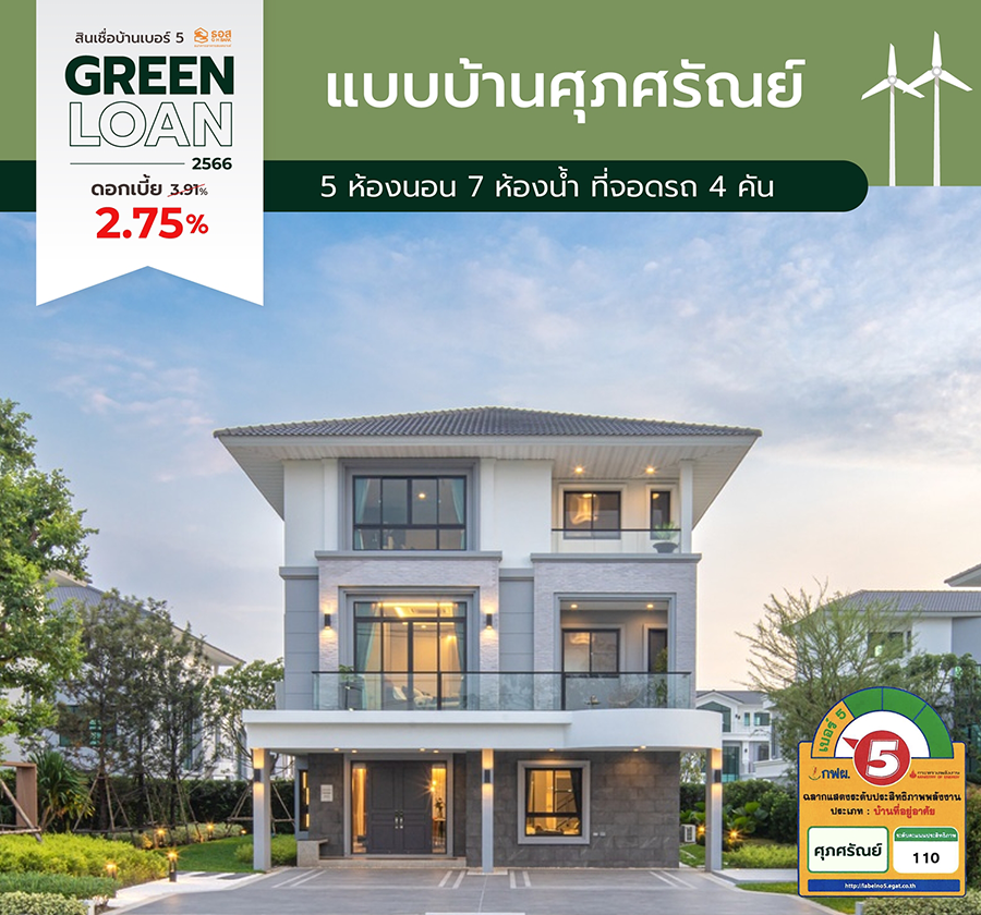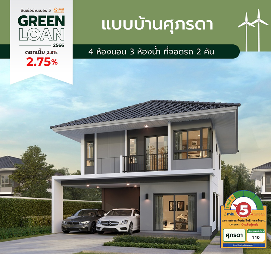 บริษัท ศุภาลัย จำกัด (มหาชน) เดินหน้าลดโลกร้อน ส่งต่อ 10 แบบบ้านติดฉลากเบอร์ 5 จาก 17 โครงการทั่วประเทศ ให้ลูกค้าได้สิทธิพิเศษสินเชื่อบ้าน Green Loan รับไปเลยดอกเบี้ย 2.75% ของธนาคารอาคารสงเคราะห์ โดยยื่นคำขอกู้สินเชื่อ ตั้งแต่วันนี้ – 31 พ.ค. 2566 นี้เท่านั้น !