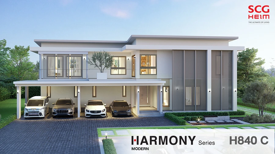 โดยแบบบ้านใหม่ล่าสุดของ เอสซีจี ไฮม์ ได้แก่ MODERN H 840C พื้นที่ใช้สอย 445 ตร.ม. 4 ห้องนอน,