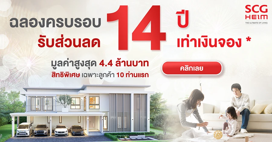 ทั้งนี้เพื่อตอกย้ำในการเป็นบริษัทรับสร้างบ้านเพื่อคุณภาพการอยู่อาศัยที่รองรับไลฟ์สไตล์ของทุกคนในครอบครัวแล้ว เอสซีจี ไฮม์ ยังได้ส่งโปรโมชั่นพิเศษในช่วงฉลองครบรอบ 14 ปี ด้วยส่วนลดพิเศษมากถึง 14 เท่าของเงินจอง* มูลค่าสูงสุด 4.4 ล้านบาท สำหรับลูกค้า 10 ท่านแรกเท่านั้น ตั้งแต่วันนี้ – 15 กันยายน 2566