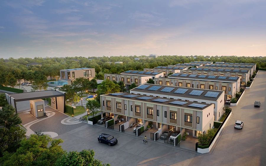 เสนา วีว่า เทพารักษ์-บางบ่อ” ทาวน์โฮมที่ออกแบบบนแนวคิดบ้านพลังงานเป็น 0 และติดตั้งโซลาร์ ช่วยให้ประหยัดค่าไฟฟ้าได้สูงสุดปีละ 21,600 บาท มาพร้อมกับฟังก์ชั่นครบครับบนที่ดินขนาด 17.5 ตร.วา พื้นที่ใช้สอย 114 ตร.ม. ขนาด 3 ห้องนอน 3 ห้องน้ำ รองรับสมาชิกในครอบครัวให้อยู่ร่วมกันอย่างอบอุ่น การออกแบบคิดและใส่ใจทุกรายละเอียดเพื่อตอบโจทย์การใช้ชีวิตภายในบ้านได้ครบทุกตารางเมตร ห้องนอนใหญ่พร้อม Walk-in Closet พร้อมมุมเอนกประสงค์ ที่ปรับเปลี่ยนได้ตามการใช้งาน ไม่ว่าจะทำงาน ห้องสังสรรค์ หรือเป็นห้องนอนชั้นล่างได้ด้วย ลงเสาเข็มหลังบ้านพร้อมกำแพงสูง 2.2 เมตร สามารถทำเป็นครัวได้ และที่จอดรถกว้าง สามารถจอดได้ 2 คัน ในเริ่มต้นเพียง 2.49 ล้านบาท (จำนวนจำกัด ราคาพิเศษเฉพาะวันงานเท่านั้น)