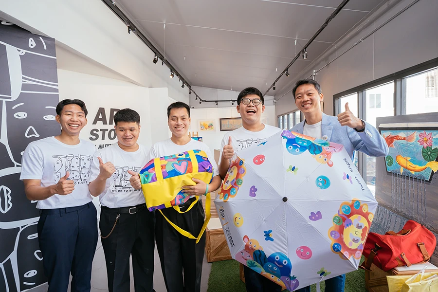โดยน้องๆศิลปินทั้ง 3 คน ได้ร่วมกันรังสรรค์พรสวรรค์และจินตนาการสู่ภาพลายเส้น ภายใต้แนวคิด We Bring Yours Happiness To Society จนเกิดลายผลงานศิลปะคอลเลคชั่นพิเศษ ซึ่งได้รับแรงบันดาลใจมาจากตุ๊กตาหมีตัวโปรดที่วางไว้หัวเตียง และดอกไม้ที่ทำให้น้องๆมีความสุขทุกครั้งที่ได้มอง ออกแบบสู่ผลิตภัณฑ์สุดน่ารัก ได้แก่ ร่ม และกระเป๋าเดินทาง เพื่อส่งต่อรอยยิ้มแทนคำขอบคุณจากใจของเราชาวศุภาลัยตลอดทั้งเดือนตุลาคมนี้