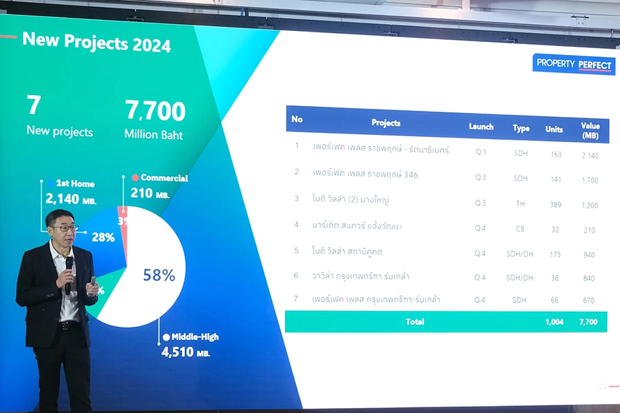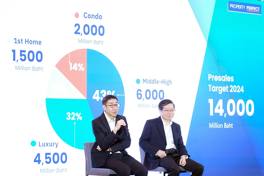 นายวงศกรณ์ ประสิทธิ์วิภาต กรรมการผู้จัดการ บริษัท พร็อพเพอร์ตี้ เพอร์เฟค จำกัด (มหาชน) แถลงถึงแผนธุรกิจปี 2567 ว่า บริษัทมุ่งเน้นการจัดการเพื่อการเติบโตอย่างยั่งยืน สร้างความแข็งแกร่งทางการเงิน ลดภาระหนี้ พัฒนาสินค้ารูปแบบใหม่ และการดำเนินงานเพื่อสร้างสิ่งแวดล้อมที่ดีอย่างต่อเนื่อง โดยปีนี้กลุ่มบริษัทตั้งเป้ายอดขายที่ 20,000 ล้านบาท เป็นโครงการแนวราบ 9,750 ล้านบาท คอนโดมิเนียม 2,540 ล้านบาท โครงการร่วมทุน 4,460 ล้านบาท และโรงแรม 3,250 ล้านบาท ขณะที่รายได้ปีนี้ตั้งไว้ที่ 18,000 ล้านบาท จากโครงการแนวราบ 8,600 ล้านบาท คอนโดมิเนียม 2,380 ล้านบาท โครงการร่วมทุน 3,770 ล้านบาท และโรงแรม 3,250 ล้านบาท
