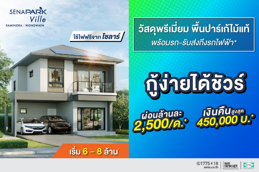 SENA ปล่อยโปรฯ ทิ้งทวนปีวัว "กู้ง่ายได้ชัวร์" ขน 10 โครงการโลเคชันเด่น รับเงินคืนสูงสุด 1.5 ล้านบาท