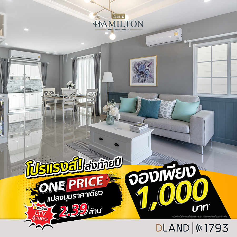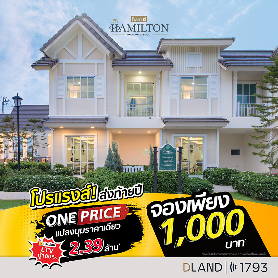 โปรโมชัน One Price ส่งท้ายปี บ้านดี เดอะแฮมิลตัน 2 ทำเลทองนนทบุรี ราคาเดียว 2.39 ลบ.* จอง 1,000 บ.