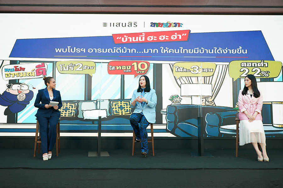 สำหรับทิศทางกลยุทธ์การรุกตลาดอสังหาฯในไตรมาส 2 นี้ แคมเปญ “บ้านนี้ ฮะ ฮะ ฮ่า” จะสร้างประสบการณ์ความสุขและเสียงหัวเราะให้กับคนไทยอย่างที่ไม่เคยเกิดขึ้นมาก่อน ผ่านแก๊งคาแรคเตอร์ตัวการ์ตูนของขายหัวเราะที่คนไทยรู้จักกันดีอย่าง หนูหิ่น, ปังปอนด์, บ.ก.วิติ๊ด มาเล่าความต้องการที่อยู่อาศัยที่ตอบโจทย์ในฐานะ End-User ตัวแทนของคนอยากมีบ้านอย่างเข้าถึงอินไซต์ของลูกค้า ตั้งแต่ดีไซน์-ฟังก์ชัน-บริการ ที่เป็นจุดเด่นเหนือคู่แข่งของแสนสิริ ตลอดจนกิจกรรม CSR ที่แสนสิริมุ่งมั่นช่วยเหลือสังคมอย่างต่อเนื่องในปีที่ผ่านๆมา พร้อมกับเพิ่มดีกรีความสุขให้คนไทยได้หัวเราะดังขึ้นกับโปรโมชั่นสุดพิเศษ “โปรอารมณ์ดี” ที่จะทำให้คนไทยทุกคนได้อารมณ์ดีม้ากมาก กับข้อเสนอที่ดีที่สุด สิทธิพิเศษสุดเอ็กคลูซีฟที่หาที่ไหนไม่ได้ในวงการอสังหา โดยตั้งเป้าสร้างยอดขายจากแคมเปญนี้กว่า 8,200 ล้านบาท”
