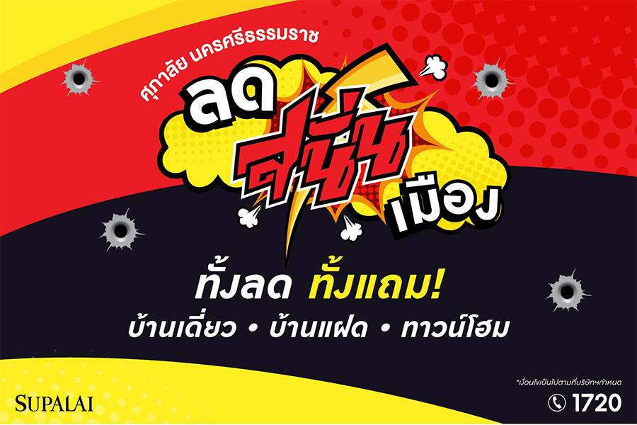 ขอลดขอแถม แบบไม่เกรงใจได้หมายนิ...."ลด สนั่น เมือง" แบบปังๆ ศุภาลัย นครศรีธรรมราช ยกขบวนบ้าน 5 โครงการ 5 ทำเล มาทุบราคา พร้อมโปรฯ สุดว้าวเเห่งปี ตั้งเเต่วันนี้ - 30 มิ.ย. 65 นี้เท่านั้น!