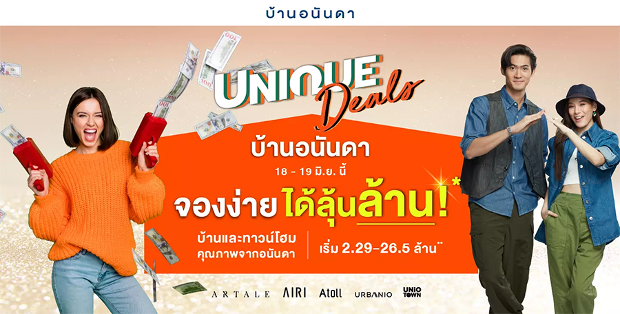 อนันดาฯ จัดโปรฯ แรงตลอดเดือนนี้ บ้านอนันดา Unique Deals จองง่าย ได้ลุ้นล้าน!* บ้านและทาวน์โฮมคุณภาพ ทำเลดี เดินทางสะดวกสบาย ติดถนนใหญ่ ใกล้ทางด่วน ใกล้รถไฟฟ้า กับแบรนด์ อาร์เทล / แอริ / เอโทล / เออร์บานิโอ และยูนิโอ ราคาเริ่ม 2.29 - 26.5 ล้านบาท* มาพร้อมโปรสุดปัง!