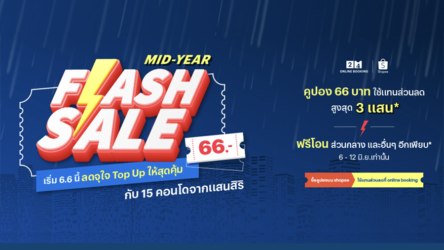 Sansiri x Shopee จัดแคมเปญ 6.6 Mid-Year Flash Sale ลดจุใจ Top Up ให้สุดคุ้ม คัดยูนิตพิเศษ ทั้งห้อง 1 Bed และ 2 Bed จำนวนจำกัด! เริ่มเพียง 1.39 ล้าน* คุ้มสุดๆ แค่ 7 วันเท่านั้น 6 - 12 มิ.ย.นี้