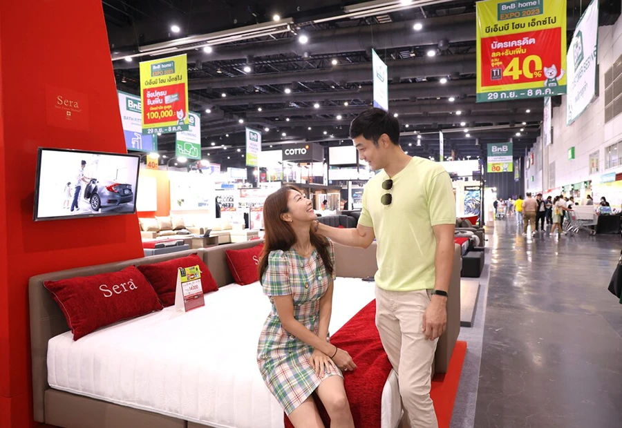 เริ่มกันที่ อ้วน-รังสิต ศิรนานนท์ ที่ควง “มะม่วง” ภรรยาสาวชาวเกาหลีสุดที่เลิฟ มาเดินช้อปพร้อมลิสต์ช้อปปิ้งของตัวเองมุ่งหน้าสู่โซน BnB home 2023 ที่รวมเอาเฟอร์นิเจอร์ และสินค้าเพื่อบ้านทุกฟังก์ชันมาไว้ที่เดียวกัน พร้อมเล่าว่า “ผมรู้สึกตื่นตาตื่นใจมากในงาน BnB home EXPO 2023 เพราะของเยอะละลานตามากจริง ๆ มีหลายโซนให้เลือกถูกใจคุณแม่บ้านอย่างมะม่วงเลย ทั้งโซฟา เตียงนอน เครื่องครัว ครบจริง ๆ ครับ ส่วนผมที่ตอนแรกตั้งใจจะมาดูพวกของอุปกรณ์ซ่อมแซม พวกอะไหล่ต่าง ๆ ที่เอาไว้เปลี่ยนในบ้าน เดินไปเดินมานี่ก็แวะมาแล้วหลายโซนเลยครับ เรียกว่ามางานเดียวได้ซื้อทุกอย่างเลย แถมราคาดีมาก ๆ สมเหตุสมผล บางอย่างถูกกว่าออนไลน์อีกครับ แถมได้เห็นของจริง ได้สัมผัสจริง มั่นได้ใจเลยครับว่าสินค้าของ BnB home เค้าคัดแต่ของคุณภาพมาให้ ยังไงผมก็ขอเชิญชวนทุกคนมางาน BnB home EXPO 2023 กันครับ เพราะที่นี่มีของให้เลือกครบจริง ๆ”