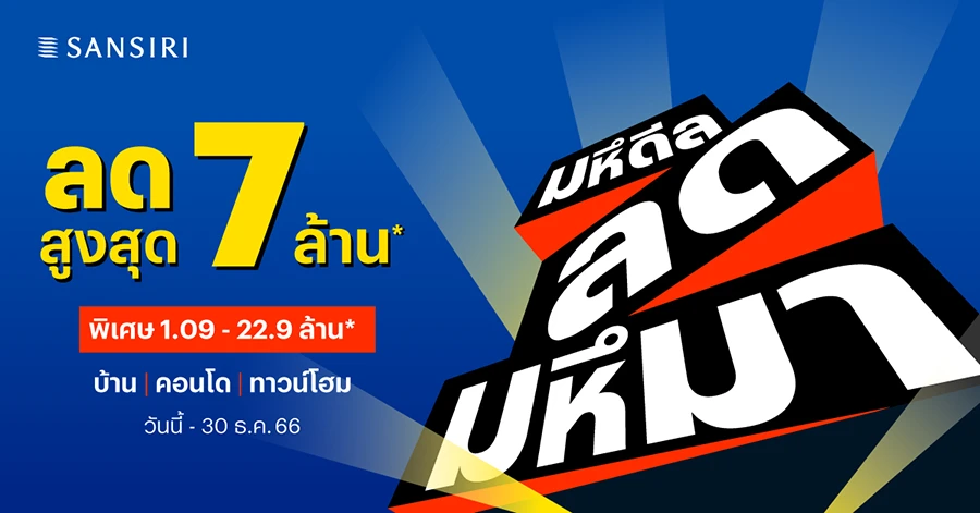 แสนสิริ ลุยต่อ Q4 กับโปรฯ “มหึดีล ลดมหึมา” จัดทัพบ้าน คอนโดและทาวน์โฮม กว่า 70 โครงการ กับข้อเสนอสุดพิเศษมอบส่วนลดสูงสุดถึง 7 ล้านบาท* ตั้งแต่วันที่ 1 พฤศจิกายน – 30 ธันวาคม 2566