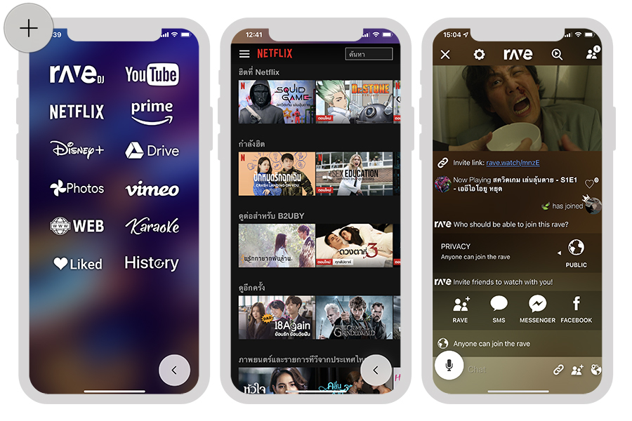 แอปพลิเคชัน Rave มีคอนเซ็ปต์ง่าย ๆ คือการเป็นตัวกลางในการสร้างห้องสำหรับเปิดแชร์สตรีมมิ่งต่าง ๆ ให้เราสามารถชวนเพื่อน ๆ เข้ามาดูพร้อมกันได้อย่างไม่จำกัด ซึ่งนอกจากจะสามารถแชร์หนัง ซีรี่ส์ หรือคอนเทนต์ต่าง ๆ จากแพลตฟอร์มสตรีมมิ่งชื่อดังได้อย่างหลากหลายแล้ว ยังมีฟีเจอร์แชร์คาราโอเกะให้ได้ปาร์ตี้กันแบบไม่ต้องห่วงเรื่องการเว้นระยะห่างเลยอีกด้วย