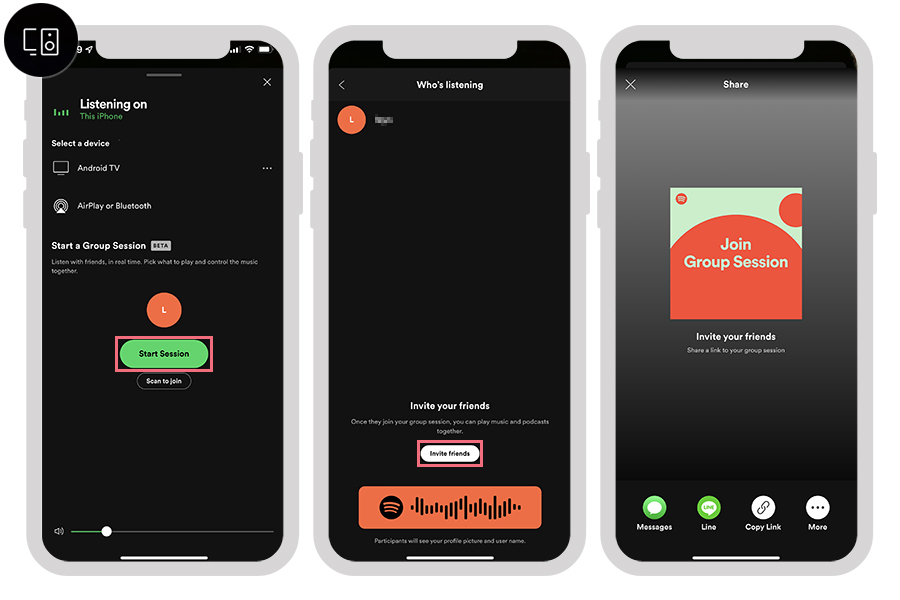 วิธีใช้งานก็แสนง่าย เพียงเลือกเล่นเพลง แล้วแตะสัญลักษณ์คล้ายซีพียูที่มุมซ้ายล่างของหน้าจอ > แตะเลือกเริ่มต้นเซสชัน (START SESSION) > แตะเลือกเชิญเพื่อน (INVITE FRIENDS) ซึ่งในส่วนนี้เราสามารถเชิญได้หลายวิธีตามแต่สะดวกเลยค่ะ