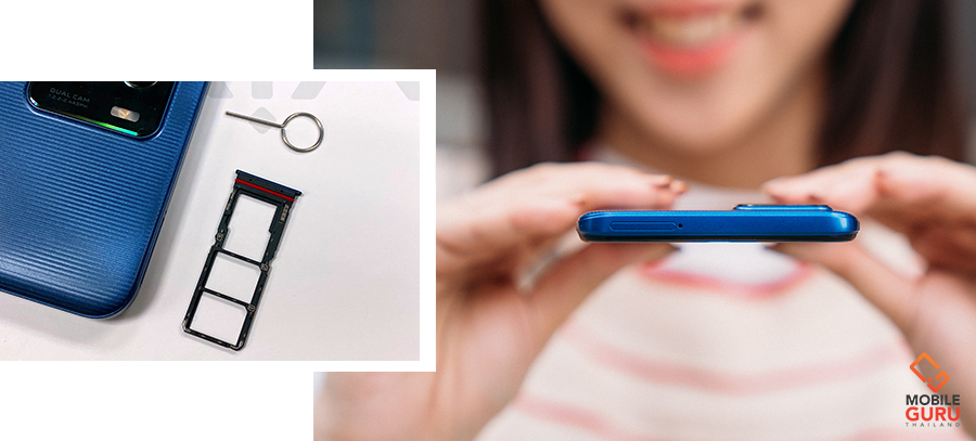 - รองรับ 2 ซิม (Nano-SIM, dual stand-by) แบบถาด Triple Slot