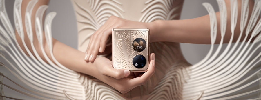 หัวเว่ยได้สร้างนิยามให้แก่ HUAWEI P50 Pocket ว่าเป็นสมาร์ทโฟนที่ผสานเทคโนโลยีกับศิลปะเข้าไว้ด้วยกัน ในการเปิดตัวครั้งนี้ หัวเว่ยจึงได้จับมือกับแฟชั่นดีไซเนอร์ระดับโลกชาวดัตซ์ Iris Van Herpen เพื่อออกแบบ HUAWEI P50 Premium Edition ให้สะท้อนความสมดุลระหว่างศิลปะและเทคโนโลยีในลวดลายนูนต่ำสามมิติ สื่อความหมายถึง “การพึ่งพาอาศัยกัน (symbiosis)” ระหว่างเทคโนโลยีและธรรมชาติ บนตัวเครื่องสีทองนวลอร่าม หรือสี Premium Gold สำหรับผู้บริโภคที่รักในความหรูหราและความเหนือระดับ