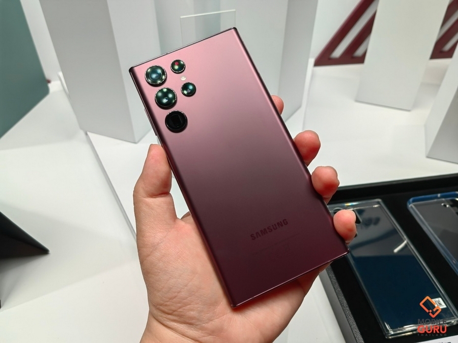 Galaxy S22 Ultra มาในตัวเลือก 4 สี ได้แก่ สีเบอร์กันดี สีดำ Phantom Black สีขาว Phantom White และ สีเขียว โดย
