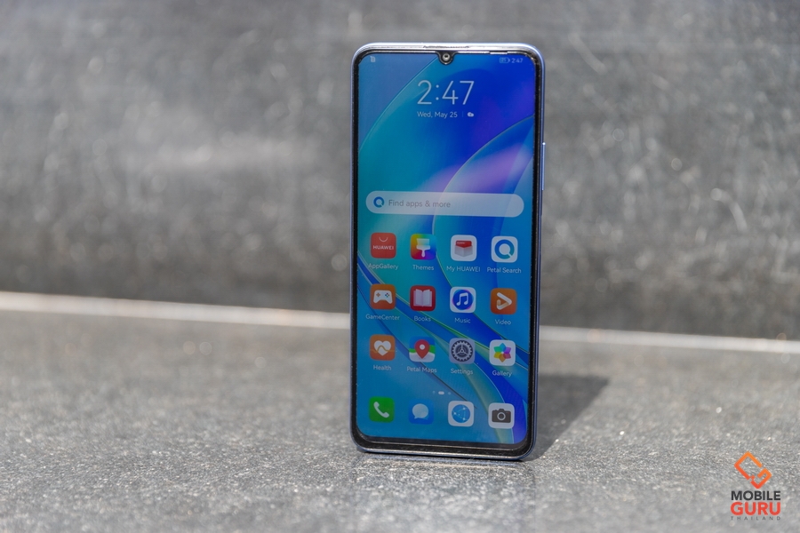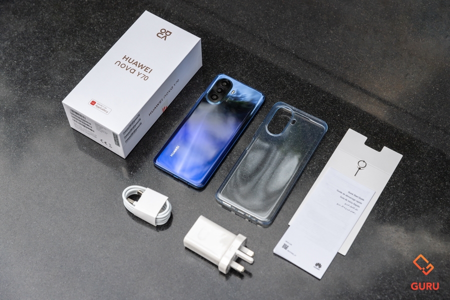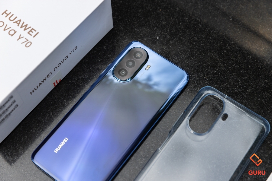 HUAWEI nova Y70 ภายในกล่องประกออบด้วย ตัวเครื่อง, อะแดปเตอร์, สาย USB Type-C, เคสใส, เข็มจิ้มซิม และคู่มือ ตัวเครื่องมาพร้อมฝาหลังดีไซน์กระจกโค้ง 2.5D ดูพรีเมี่ยม และสวยงาม มีการเคลือบผิวเงาวับดูสวยงามมากๆครับ แต่ก็เป็นรอยนิ้วมือและคราบมันได้ง่ายเช่นกัน มีหน้าจอ TFT LCD ขนาดใหญ่ 6.75 นิ้ว ความละเอียด HD+ สีสันสวยงาม และสู้แสงได้ดี ใช้งานกลางแจ้งได้สบายๆ กล้องหน้าความละเอียด 8MP F2.0 และกล้องหลัง 3 เลนส์ 48MP F1.8 + 5MP F2.2 Ultra-Wide + 2MP F2.4 Depth