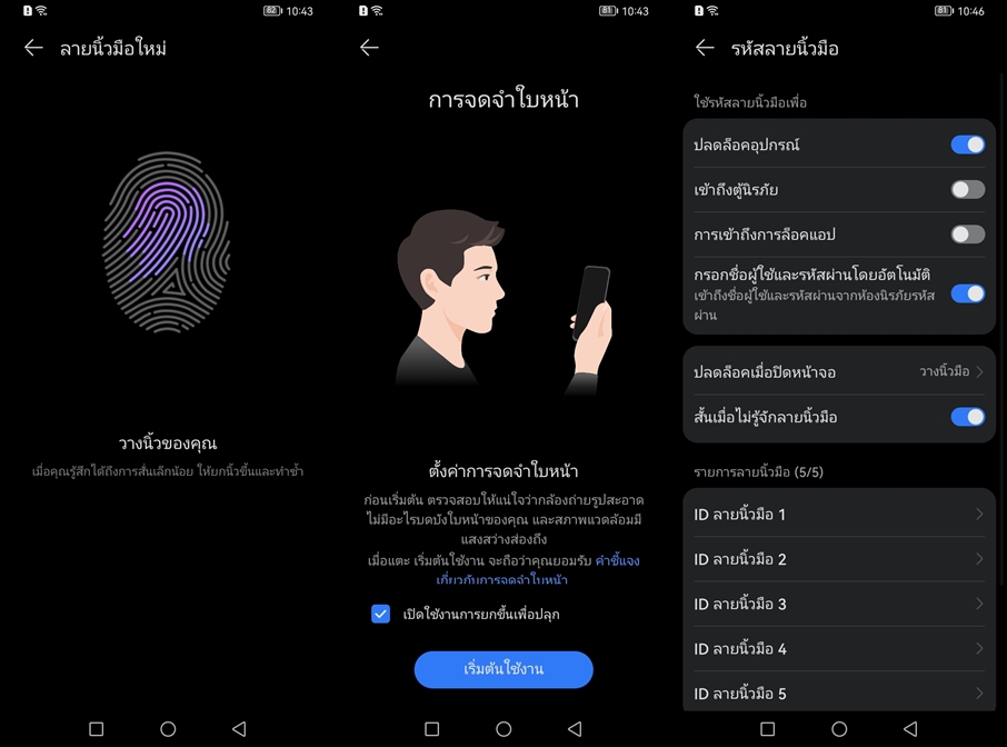 HUAWEI nova Y70 รองรับสแกนลายนิ้วมือรองรับสูงสุด 5 ลายนิ้วมือ และรองรับแสกนใบหน้า ความรวดเร็วและแม่นยำทำได้ดีครับ