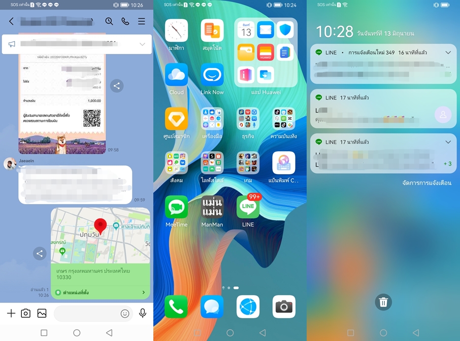 จากการทดสอบ Line แจ้งเตือนตามปกติแล้วนะครับ และมีตัวเลขกำกับตรงไอค่อนแอปเลย รวมทั้งเราสามารถแชร์ Location ได้แล้วด้วย การใช้งานดูปกติทุกอย่าง ข้อจำกัดที่ยังทำไม่ได้ก็คือเรื่องของการ Backup ข้อมูลการใช้งานครับ ซึ่งก็ต้องรอการอัพเดทเพิ่มเติมในอนาคต สำหรับในตอนนี้สมาร์ทโฟนจาก HUAWEI ที่สามารถใช้วิธีนี้ได้จะมีด้วยกัน 3 รุ่นครับ ได้แก่ HUAWEI nova Y70 (EMUI 12.0.0.146), HUAWEI nova 9 SE (EMUI 12.0.1.157), HUAWEI nova 9 (EMUI 12.0.1.238) ส่วนรุ่นอื่นๆจะทยอยให้อัพเดทกันต่อไปตามลำดับ