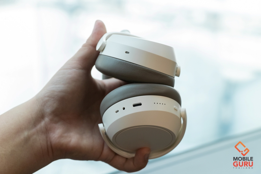 ตัวหูฟังจะมีพอร์ท USB-C, แจ็คหูฟัง 2.5 มม. (มาพร้อมสายหูฟัง 2.5 มม. แปลง 3.5 มม.) รุ่นนี้สามารถใช้งานได้ทั้งไร้สาย และมีสายเลยนะครับ, ไฟ LED แสดงสถานะ, ปุ่ม Power, ไมโครโฟนทั้ง 2 ข้าง