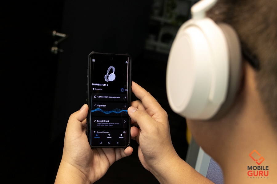 Sennheiser Momentum 4 Wireless ทำงานร่วมกับแอปพลิเคชั่น Sennheiser Smart Control ซึ่งรองรับทั้งบนระบบ Android และ iOS รองรับฟังก์ชั่นการปรับแต่ง EQ (Equalizer) สามารถปรับแต่งได้อย่างอิสระตามใจชอบ 3 ย่านเสียง Bass, Mid, Treble หรือจะเลือกจากรูปแบบสำเร็จรูปที่มีมาให้ 6 รูปแบบก็ได้นะครับ ได้แก่ Rock, Pop, Dance, Hip Hop, Classical หรือ Movie ซึ่งจริงๆแล้วผมว่า Sennheiser Momentum 4 Wireless จูนเสียงมาดีมากๆเลยนะครับ เดิมๆสำหรับผมเพราะที่สุดแล้ว นอกจากนี้จะมีการปรับตั้งค่า Sound Check , Sound Zones , ANC และ Sidetone