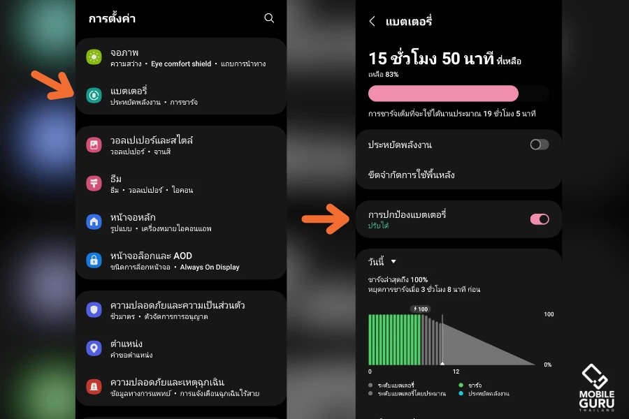 ขั้นตอนที่ 3 กดเข้ามาใน "การปกป้องแบตเตอรี่" โดยสามารถเลือกปรับได้หลายโหมดตามแล้วถนัดได้เลยครับ