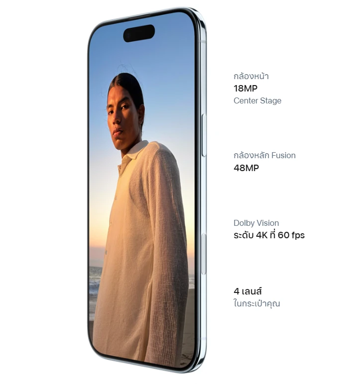 - VDO กล้องหน้า: Dolby Vision ระดับ 4K@60fps, Apple Log 2