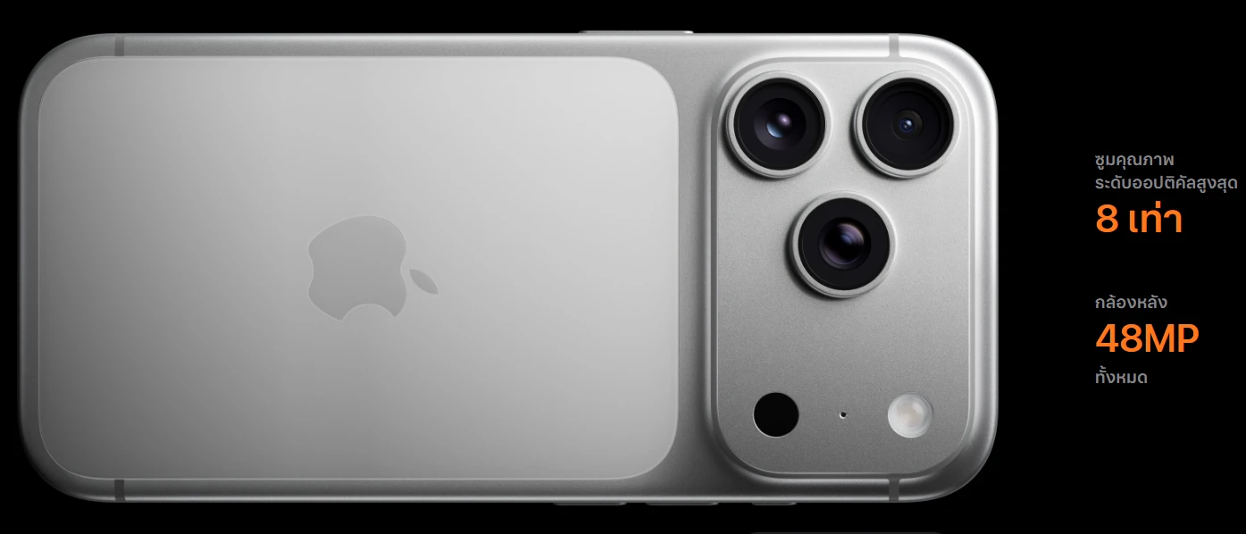- VDO กล้องหลัง: Dolby Vision ระดับ 4K@120fps, Apple Log 2