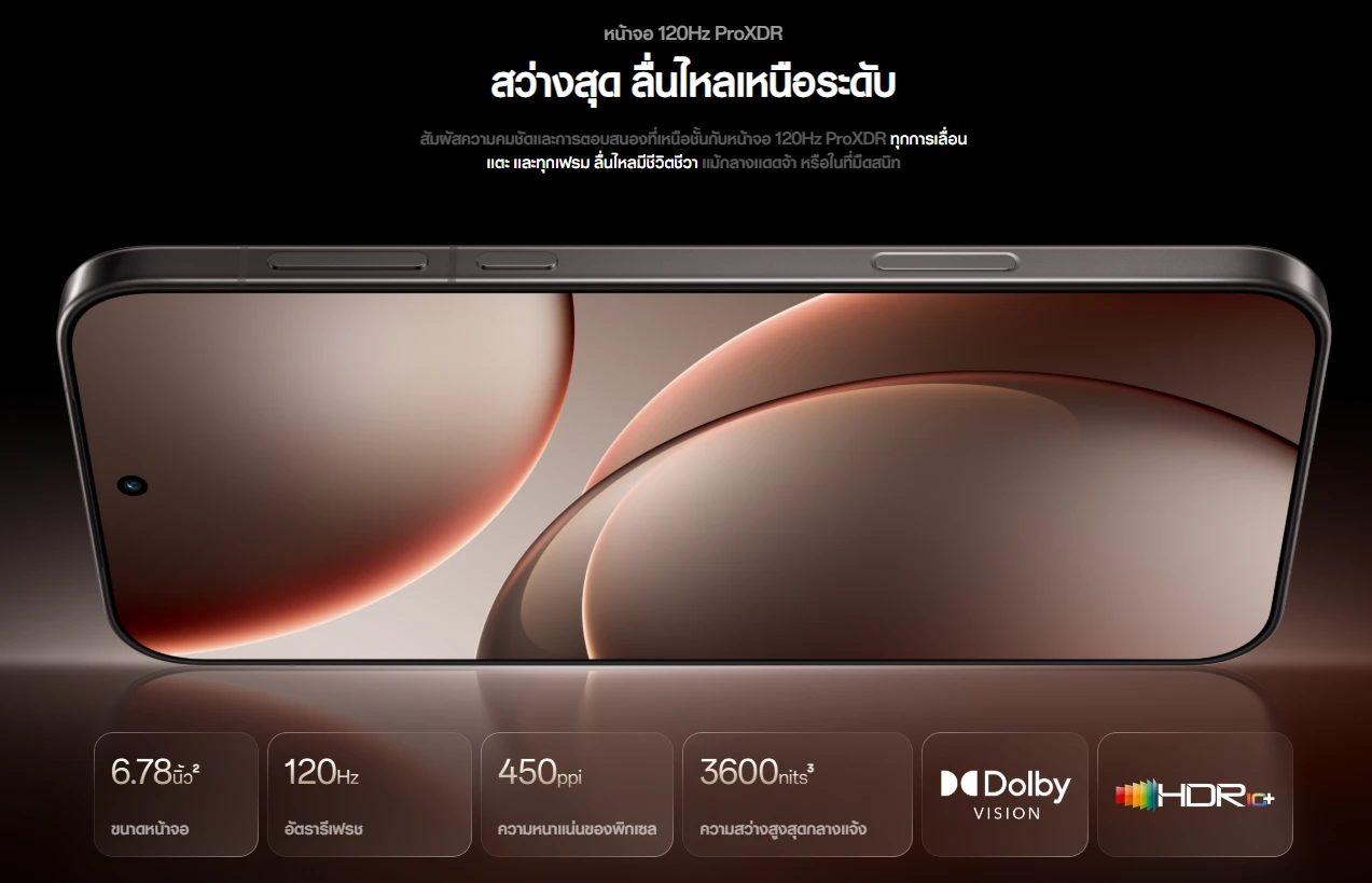- หน้าจอ: 6.78" LTPO AMOLED, 1272x2772px, Refresh rate 120Hz, ความสว่าง 3600 nits