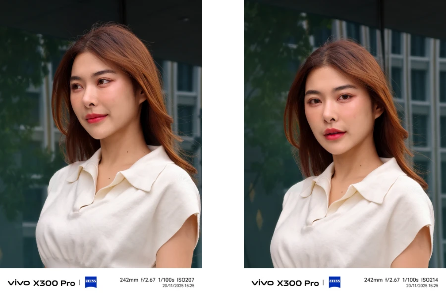 รอบนี้ vivo X300 Pro มีชุดเลนส์เสริม vivo ZEISS 2.35x Telephoto Extender ที่เพิ่มความสามารถในการถ่ายภาพระยะไกลได้คมชัดมากขึ้น ซึ่งจะดีกว่าการใช้กล้อง Telephoto ปกติในการซูมระยะไกล เพราะหากเป็นระยะที่ไกลเกิน 10x ขึ้นไปจะทำให้ภาพเริ่มสูญเสียรายละเอียด แต่ถ้ามี vivo ZEISS 2.35x Telephoto Extender มาเสริมการซูมเริ่มที่ระยะ 200mm จะช่วยต่อระยะการถ่ายภาพไกลได้ดีมากขึ้น โดยจะเหมาะกับการใช้งานถ่ายงานศิลปิน งานคอนเสิร์ต หรือถ่ายภาพวิวทิวทัศน์ หรือสัตว์ในธรรมชาติจากระยะไกลได้