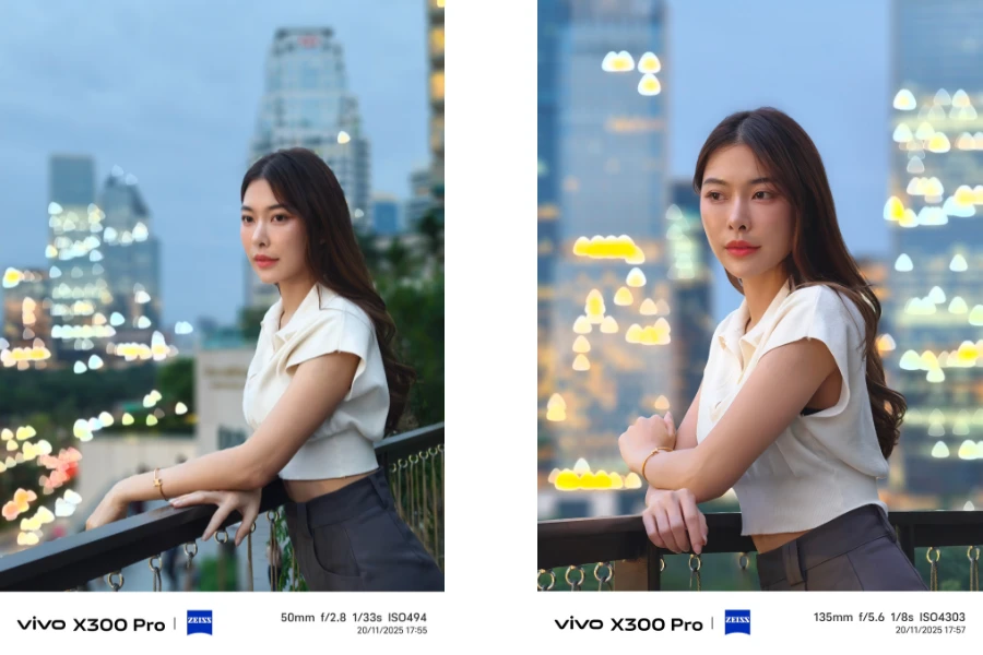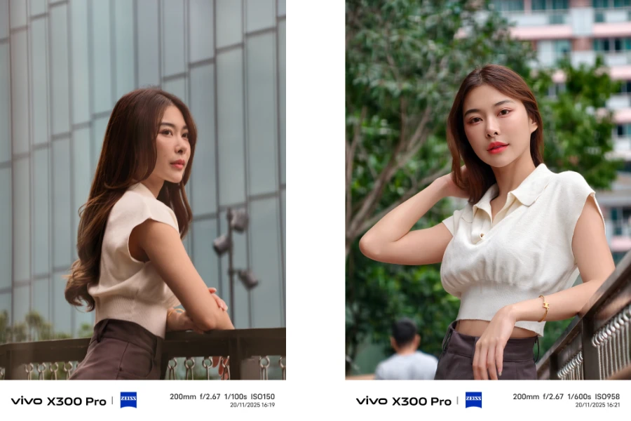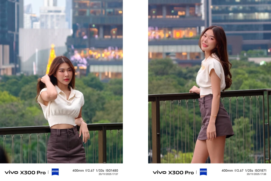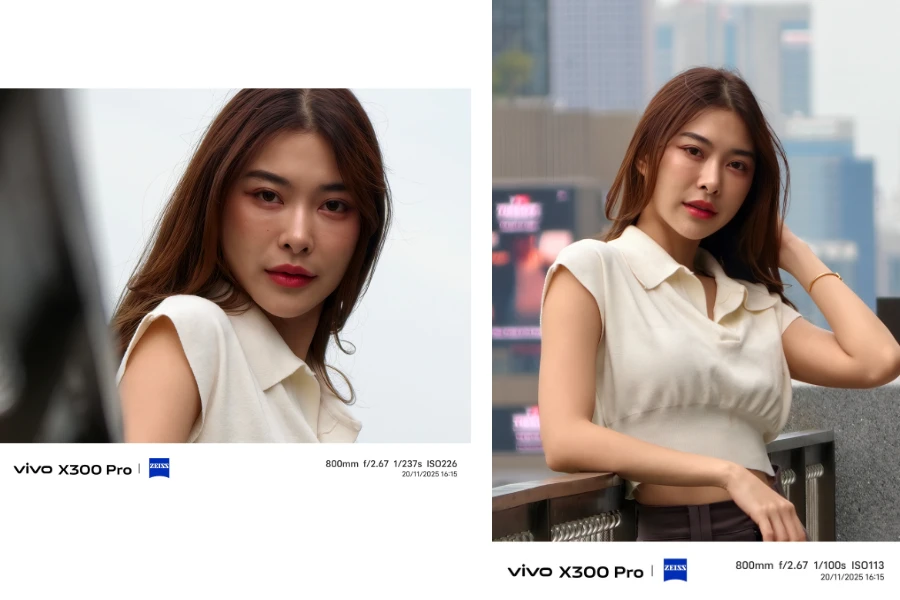 รอบนี้ vivo X300 Pro มีชุดเลนส์เสริม vivo ZEISS 2.35x Telephoto Extender ที่เพิ่มความสามารถในการถ่ายภาพระยะไกลได้คมชัดมากขึ้น ซึ่งจะดีกว่าการใช้กล้อง Telephoto ปกติในการซูมระยะไกล เพราะหากเป็นระยะที่ไกลเกิน 10x ขึ้นไปจะทำให้ภาพเริ่มสูญเสียรายละเอียด แต่ถ้ามี vivo ZEISS 2.35x Telephoto Extender มาเสริมการซูมเริ่มที่ระยะ 200mm จะช่วยต่อระยะการถ่ายภาพไกลได้ดีมากขึ้น โดยจะเหมาะกับการใช้งานถ่ายงานศิลปิน งานคอนเสิร์ต หรือถ่ายภาพวิวทิวทัศน์ หรือสัตว์ในธรรมชาติจากระยะไกลได้