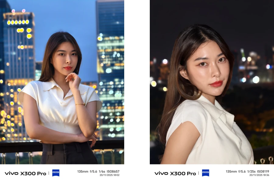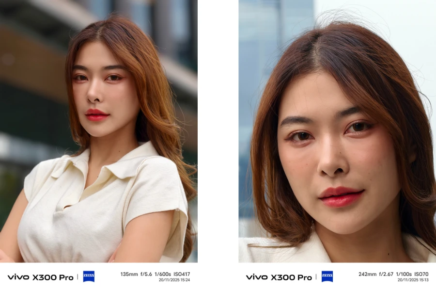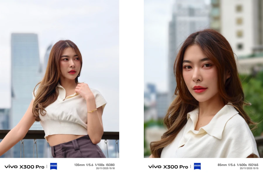 vivo X300 Pro เป็นสมาร์ตโฟนตัวเรือธงในปี 2025 ที่ถ่ายรูปได้ดีมาก ไม่ว่าจะเป็นผู้ที่ถ่ายรูปไม่เก่งหรือผู้ที่ชอบถ่ายรูปก็สามารถใช้งานได้สนุก ด้วยลูกเล่นโหมดการถ่ายรูปที่หลากหลายไม่ว่าจะเป็นการถ่ายภาพ Portrait ละลายหลังเสริมด้วยโบเก้ ZEISS ต่างๆ ซึ่งมีการปรับจูนโทนผิวให้สวยใสขึ้น หรือโหมด Stage 2.0 ที่สามารถถ่ายภาพระยะไกลได้คมชัด รวมถึงมีชุดแต่ง Grip ที่แต่งให้ vivo X300 Pro เหมือนกล้องถ่ายรูประดับโปร และเลนส์เสริม vivo ZEISS 2.35x Telephoto Extender เพิ่มระยะในการถ่ายภาพไกลได้มากขึ้น