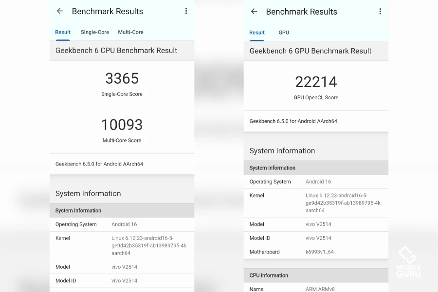 สำหรับการทดสอบ Geekbench ของ Dimensity 9500 (vivo X300 Pro)